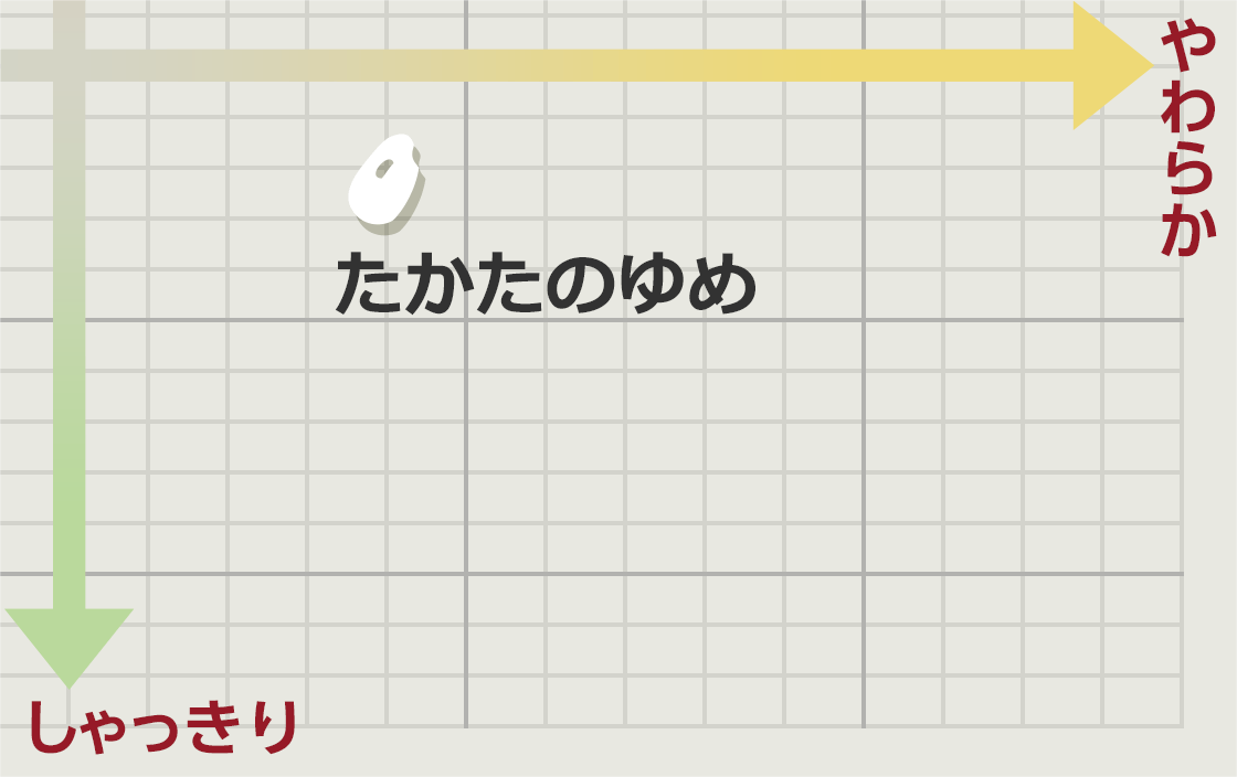 コシヒカリを先祖にもつ、北海道オリジナル品種です。名前の由来は、きらきらと輝く雪と白いごはんのイメージから。しっかりとした粒感があり、噛むほどに口の中に甘みが広がるお米です。粒がくずれにくく、炒めごはん等にも適しています。