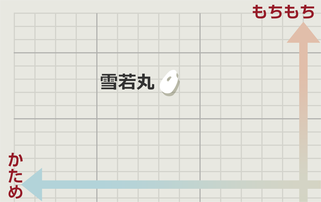 山形県が誇る新品種です。外観が雪のように美しい山形県産「つや姫」にも似ていることから、「つや姫」の弟をイメージして「雪若丸」と命名されました。大粒でしっかりとした粒感、そして適度な粘りが両立した新食感が特長です。