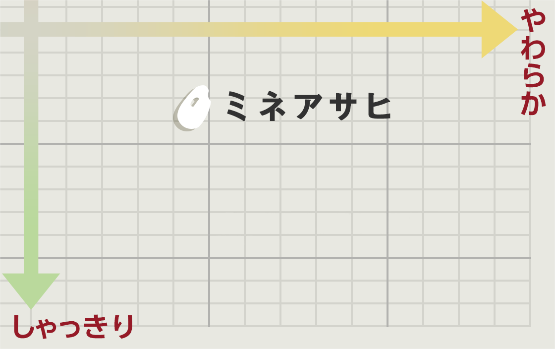 愛知県育ちのブランド米、ミネアサヒ。米粒はやや小ぶりで丸々としていますが、小粒ながら炊き上がりはふっくらとして美しい光沢があります。口に含むとしっかりとした粒感があり、ほどよい粘りとともに味わい深いお米です。