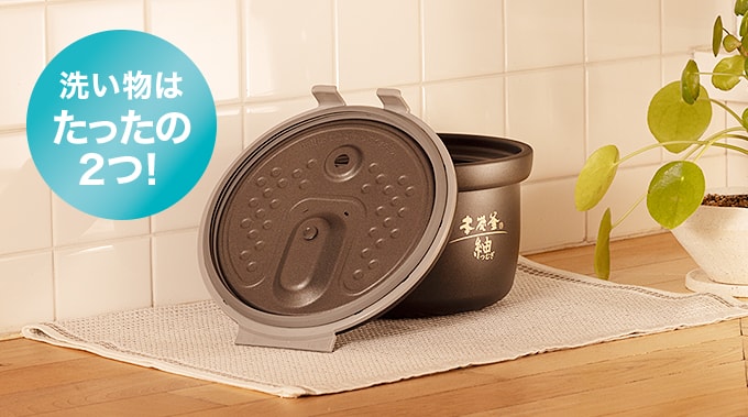 洗い物はスリム内ぶたと内釜のたった2点。