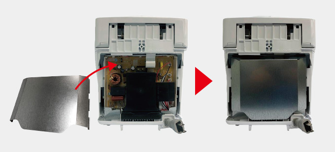高い電圧のかかる基板は板金で安全性を高めました。