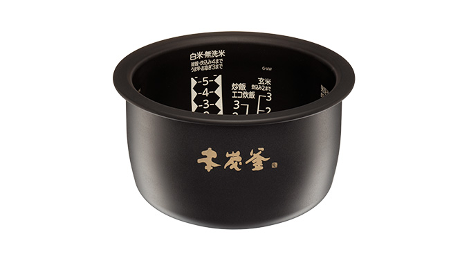 内釜でそのまま洗米できます。炭の粉を固めて作る本炭釜は表面に細かい凹凸があり、コーティングが密着しやすいため、内釜はがれに強い。これでコーティングが長持ちします。米を洗米する試験も実施しており、手で100万回洗米してもはがれなかったことを実証済です。