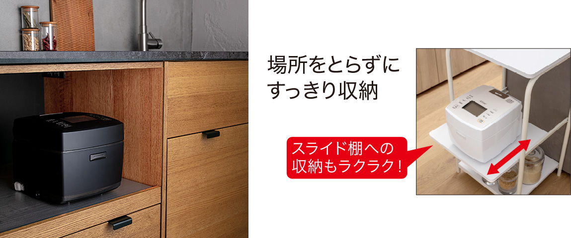 インテリアにもなじみやすいデザインで収納しやすい。また、コンパクトなので場所を取らない。