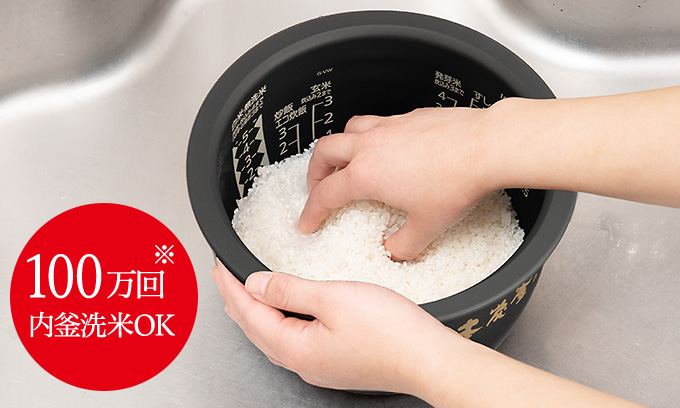 100万回洗米しても塗装がはがれにくい。内釜の耐久性にもこだわりました。