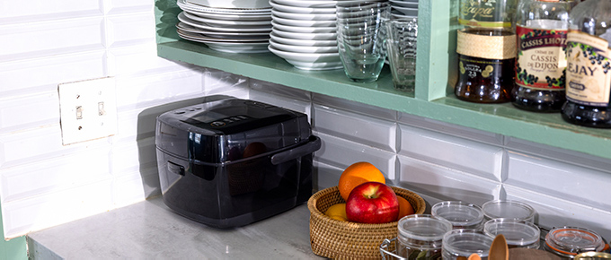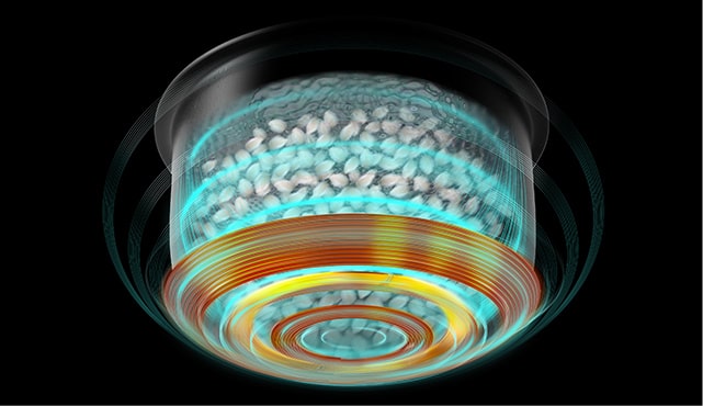 胴周りを炭コートすることで、ごはん全体を包み込むように遠赤外線を放射します。お米一粒一粒に熱を与えて、粒立ちの良いごはんに。