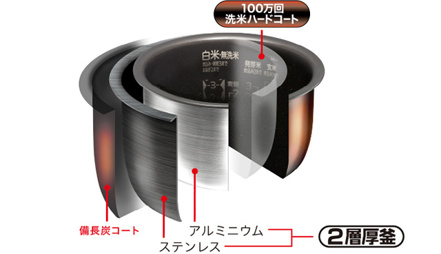 炭の力で大火力を均一に伝え、粒立ちよくふっくら炊き上げ。