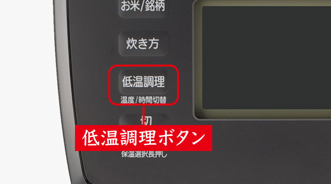 - 低温調理を押し、温度と時間を設定する。【65℃】【50分】で加熱する。
