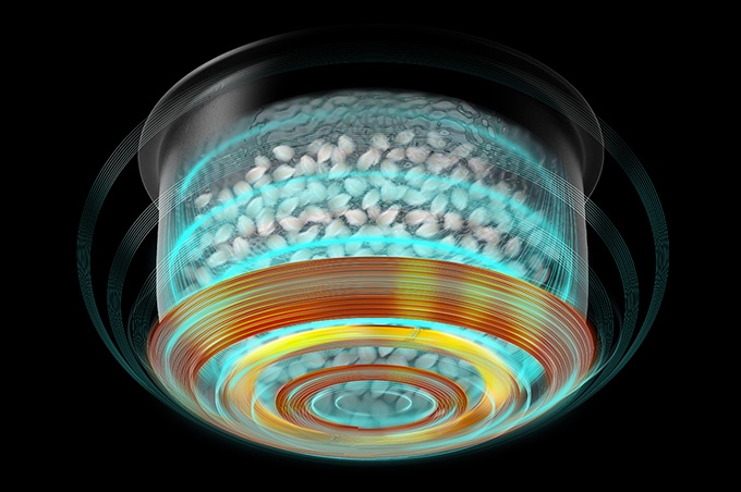 全方向から内釜を包み込む七重のヒーターで、お米全体に熱を伝え、しっかりと粒感を立たせます。