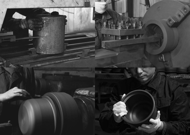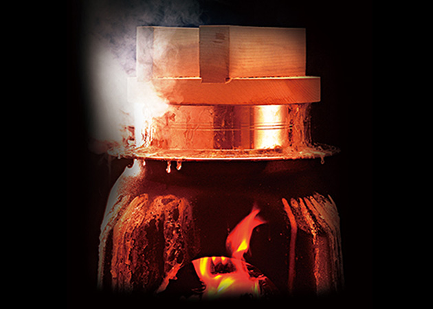 炭素材と形状にこだわり、職人がひとつ約100日間かけて仕上げる本炭釜。1000℃超えの炉で焼成し、丁寧に理想の形に削り出す。
