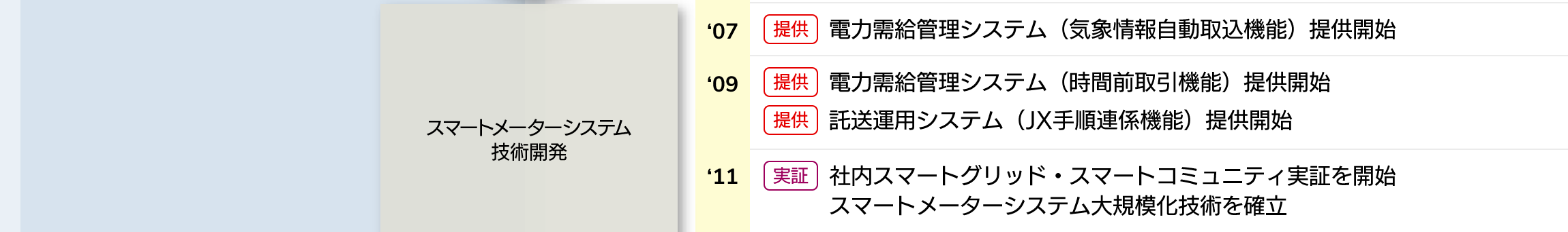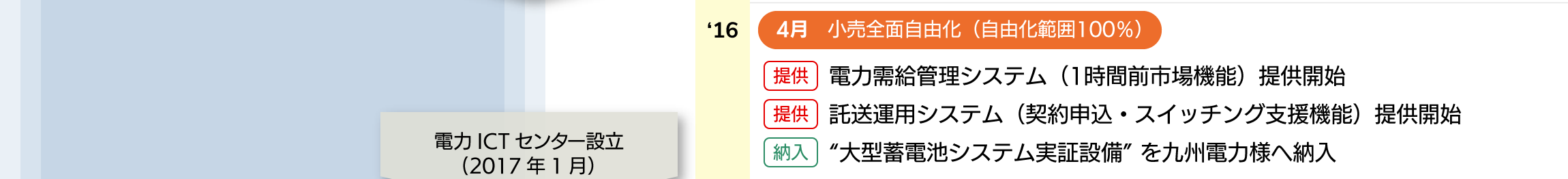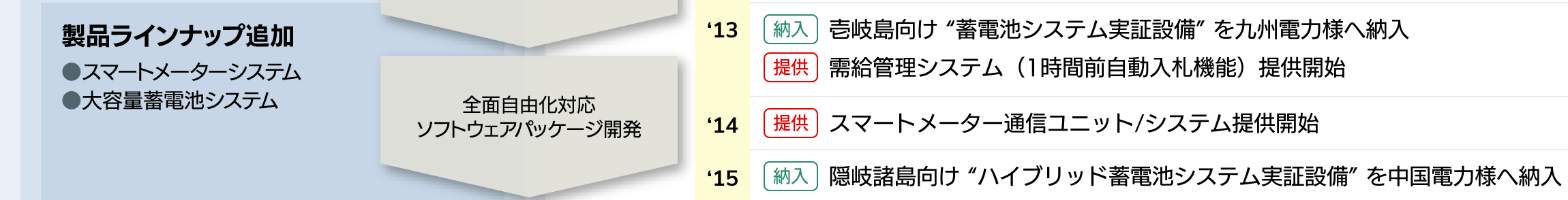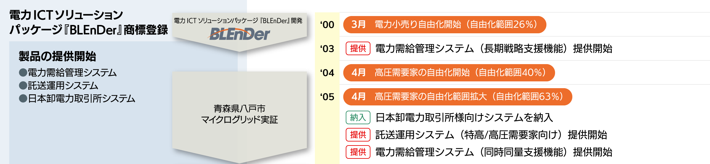そこで培った技術・ノウハウに基づく製品をお客様に提供し続けることで、電力の市場取引や電気使用量の自動検針など高信頼性が要求される電力インフラを支え、これまで電力自由化の歴史とともに歩んできました。
