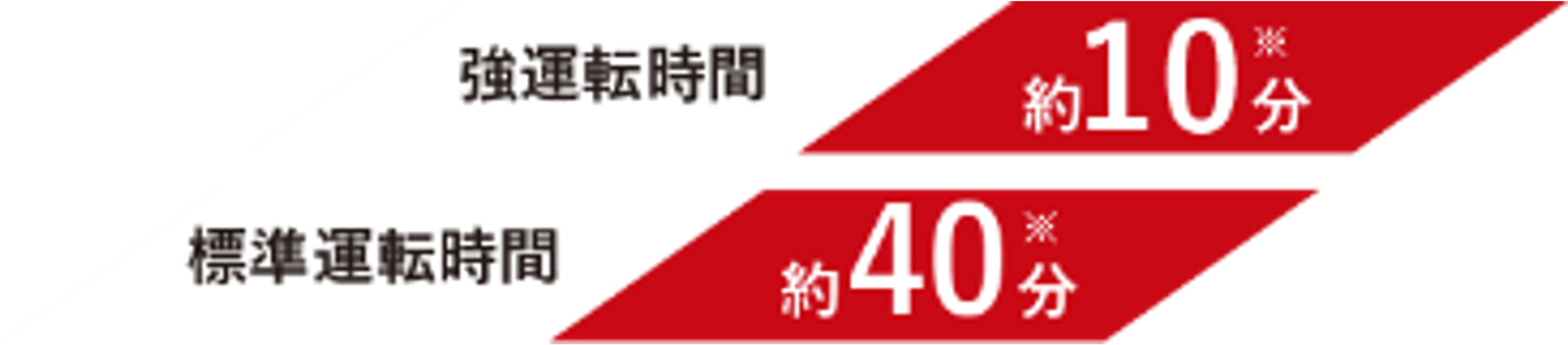 約40分※連続使用(標準の場合)ができ、強運転も約10分※運転可能。パワフルな吸引力で部屋中くまなく掃除することができます。