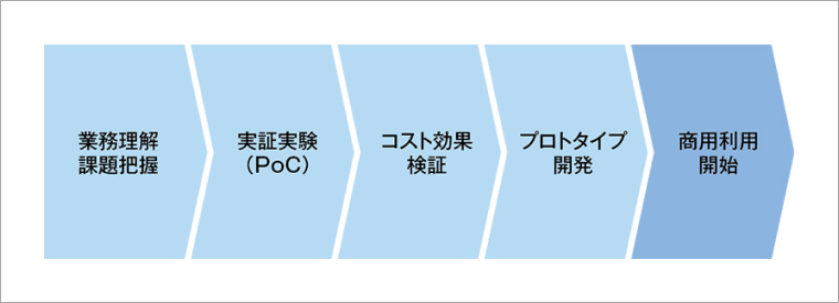 AIのビジネス活用は、事前に予想できない部分が多くあります。そこで、まず学習データを集め、実証実験を行って効果を確認してから、プロトタイプを経て本格的な導入に至ります。また、本システムが稼働した後も新しいデータで学習を続ける必要があります。このため、AIのビジネスを成功に導くためには、クライアントとベンダーが協力して、経験を積み重ねていくことが求められます。