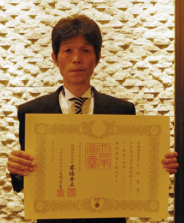 平成30年度春の「黄綬褒章」を受章