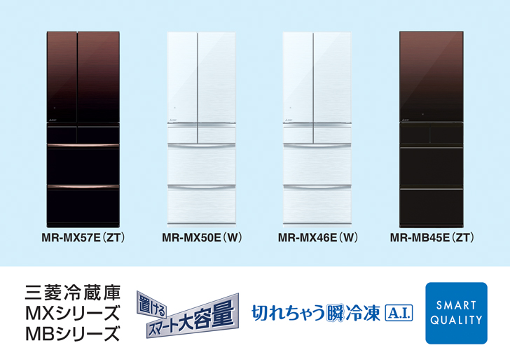 三菱冷蔵庫「置けるスマート大容量」MX・MBシリーズ新商品発売のお知らせ