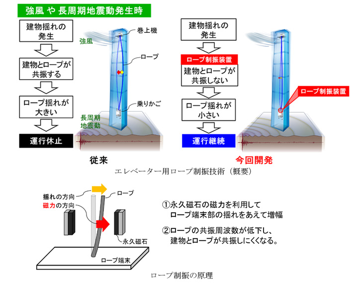 高層ビル向けエレベーター用「ロープ制振装置」を開発