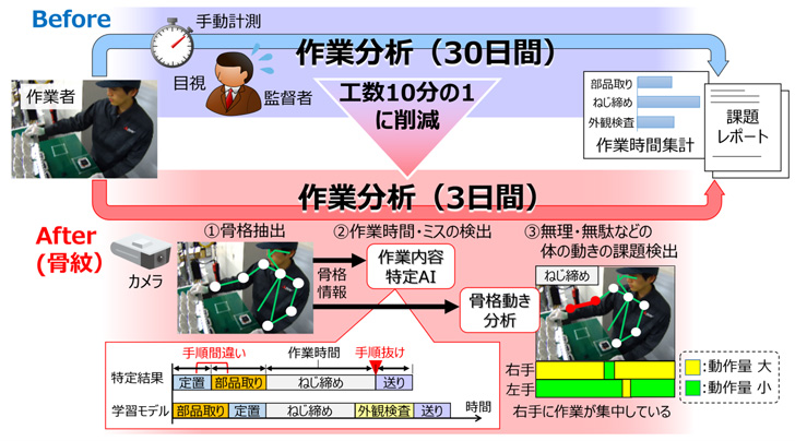 AIでカメラ映像から特定の動作を自動検出する「骨紋」を開発