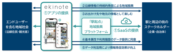 駅と街のガイドブックアプリ「ekinote」提供および地域振興実証実験を開始