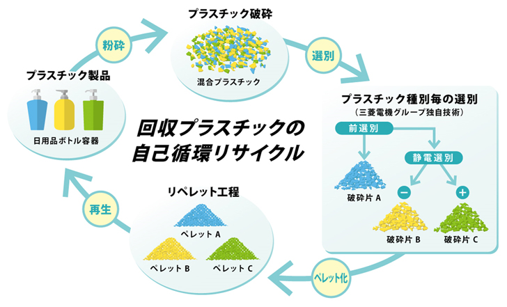 三菱電機の高度選別技術による花王提供の日用品プラスチックの選別試験を開始