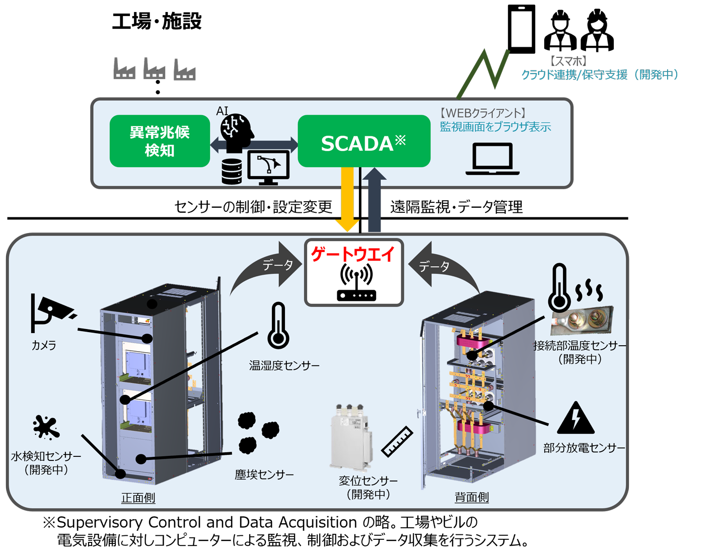電気保安人材の不足や再生可能エネルギー設備の増加への対応、更新推奨時期を超過した設備の突発的な故障リスク軽減を目的に、受配電盤にセンサー、カメラを取り付け、遠隔・常時監視を行い、保安業務の効率化と安定操業を実現し社会課題解決に貢献します。