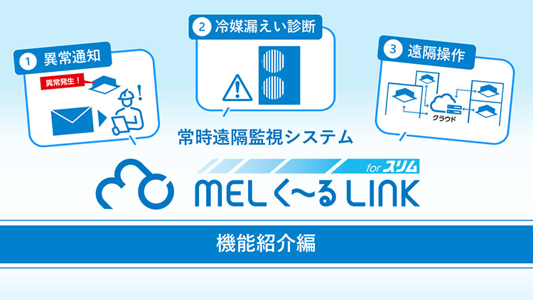 - MELく~るLINKとMELく~るLINK for スリムで接続可能な機種や提供する遠隔監視支援サービスの内容は異なります。詳しくは弊社営業窓口までお問い合わせください。