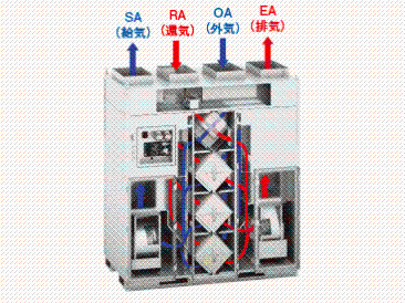 高効率な全熱交換器「ハイパーエレメント」を搭載し、高い省エネ性を実現。また機械室・廊下と仕切り壁内などの狭いスペースに設置することができ、会議室やホールなどの大空間の換気が可能。また、天吊タイプと異なりメンテナンスが一箇所で済み、メンテナンス時間・コストの圧縮が可能。加えてジーニアスリモコンに対応し、週間スケジュールやナイトパージ運転など様々な機能が使用可能。