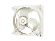工場内に滞留する熱気・蒸気をエアー搬送ファンで有圧換気扇の給気から排気に向けて搬送します。