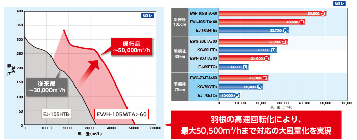 大風量ラインアップ(30,000~50,000m³/h)拡充