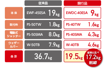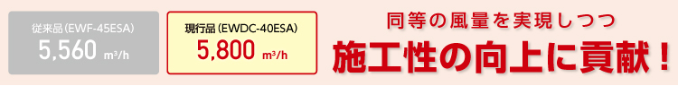 - ※3新商品(EWDC-40ESA)の強ノッチ運転時と、同等風量帯の従来機種(EWF-45ESA)運転時(50Hz)の比較
