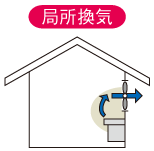 キッチン・浴室・トイレ・リビングなど、汚れた空気が大量発生する部分に効果的な換気方式。