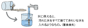 常時(24時間)小風量で排気・給気を行い、汚染物質の濃度上昇を抑える