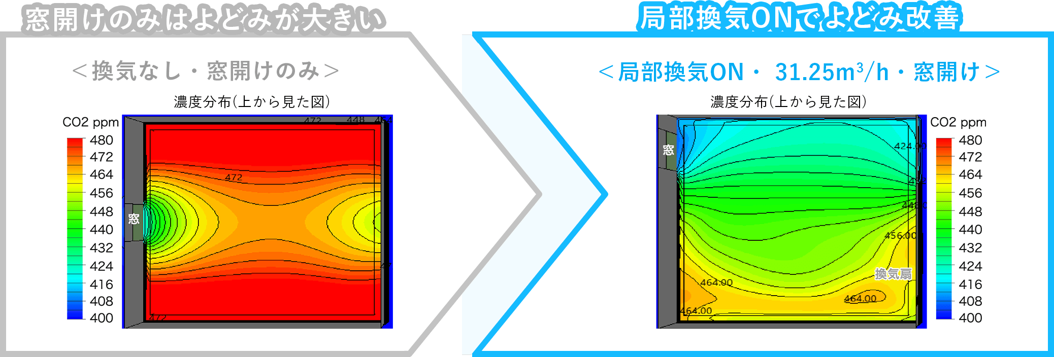 排気用と給気用の2つのファンを搭載し、強制的に空気を入れ換え。