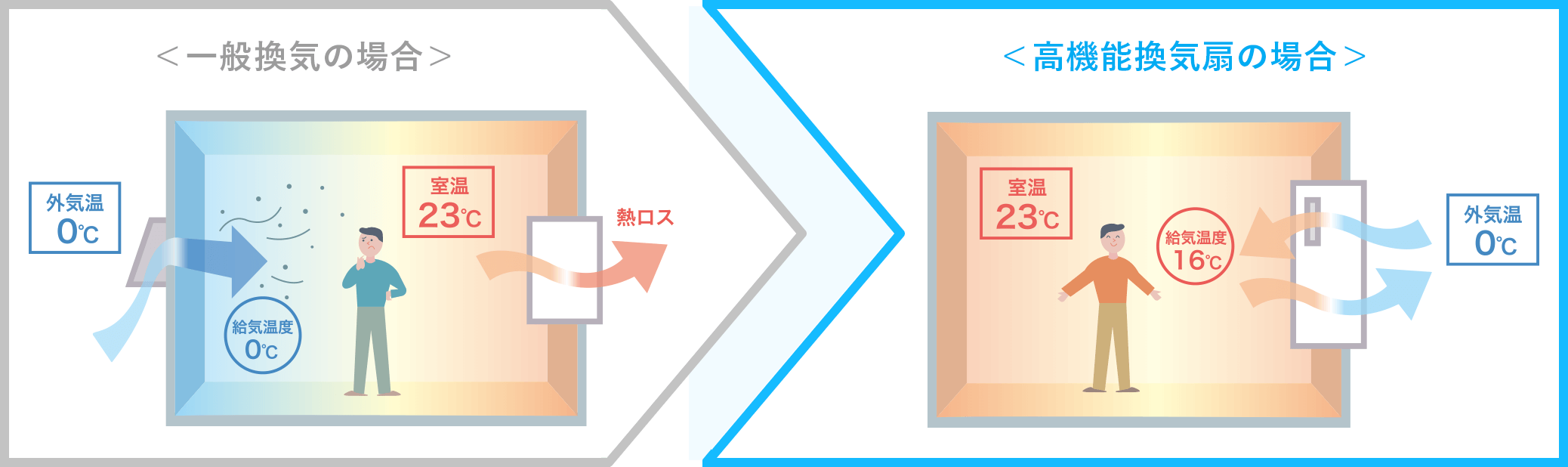 さらに、換気の際に捨てられる熱ロスを抑制するのがロスナイ®換気の最大のポイント!