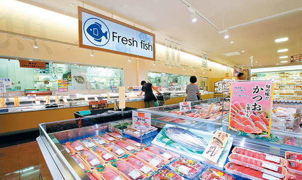 鮮魚本来の色を鮮やかに際立たせる、高彩度LED照明の光が食品売り場の活性化に貢献