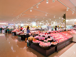 「マルエツ 新川崎店」に採用された三菱電機のLED照明
