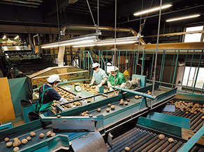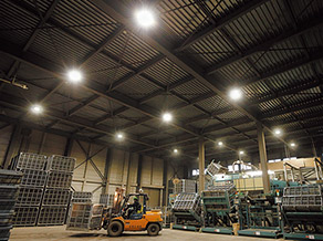 実地調査に基づく省エネを試算し、照明のLED化を提案。現場での照明実験を実施した上で大幅な省エネと作業性向上を確認。省エネによる電気料金削減は器具のリース料を相殺できただけでなく、生産者の負担低減にも直結し、地域ブランド力アップにつながる生産者の意気込み向上をも引き出した。改修後は最大需要電力が下がり、契約電力の見直しも検討されている。