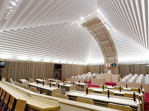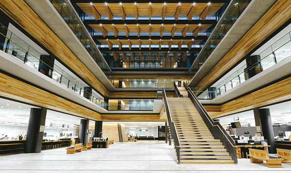 新庁舎のLED照明システムが、省CO2、 快適な光環境、市民の環境啓発を実現