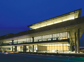 世界最大規模のLED素子メーカーを擁する徳島県阿南市は、近隣町の合併を機に、市民サービス、行政効率向上を目標に、市庁舎改築の基本構想計画をスタートさせた。新庁舎は、東南海地震に備えた防災拠点、市民が集う公共空間の役割とともに、自然エネルギーと最先端省エネ技術による環境配慮型公共施設を目指し計画。当初より、省エネと地域振興の観点から、県産LED素子によるオールLED照明で設計が進められていた。