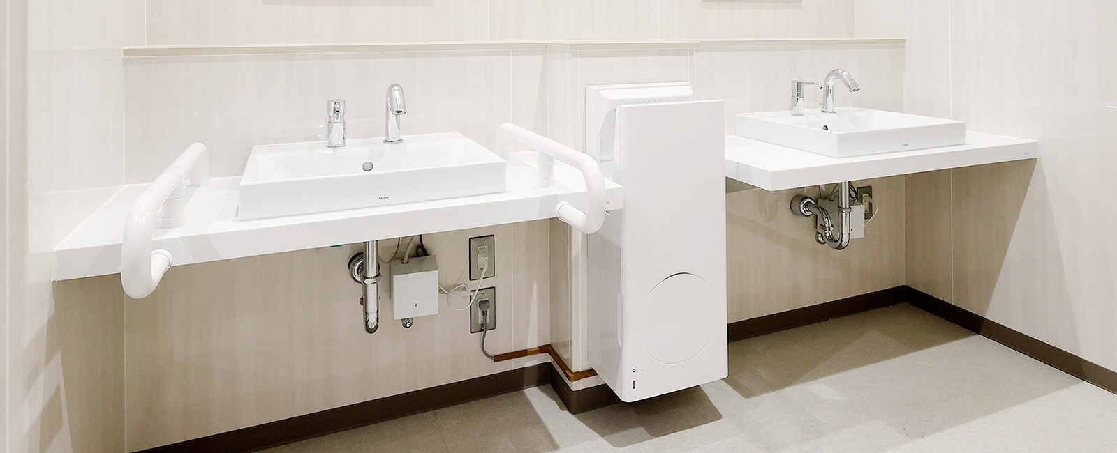 そんな、出会いと発見に満ちた百貨店のサニタリー空間に導入された、ジェットタオル。