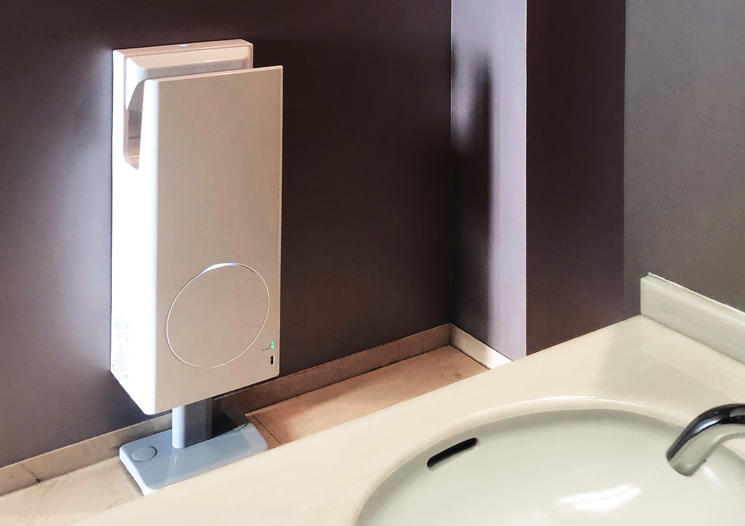 実際に「衛生強化モデル」を使ってみたところ、「ヘルスエアー®機能」搭載循環ファンは稼働音がほとんどなく、動いているのか心配になるくらい静かで驚いています。天面のランプが点くので稼働していることがわかり、清浄機能が働いているという安心感が得られるのはよいですね。脱臭効果があるため、トイレのニオイが以前より気にならなくなったというのも更新効果といえます。乾燥機能に関しては、風の出方が従来品より優しくなったように感じる半面、以前より速乾性がよくなったと思います。旧型品の再稼働時も今回の新商品設置後も、利用者の方々からジェットタオルの使用に関する問い合わせや稼働停止の申し入れはなく、施設運営側としては何よりです。
