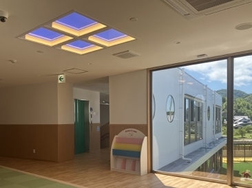 青空照明で雨の日でも屋外のようにのびのび遊べる空間に