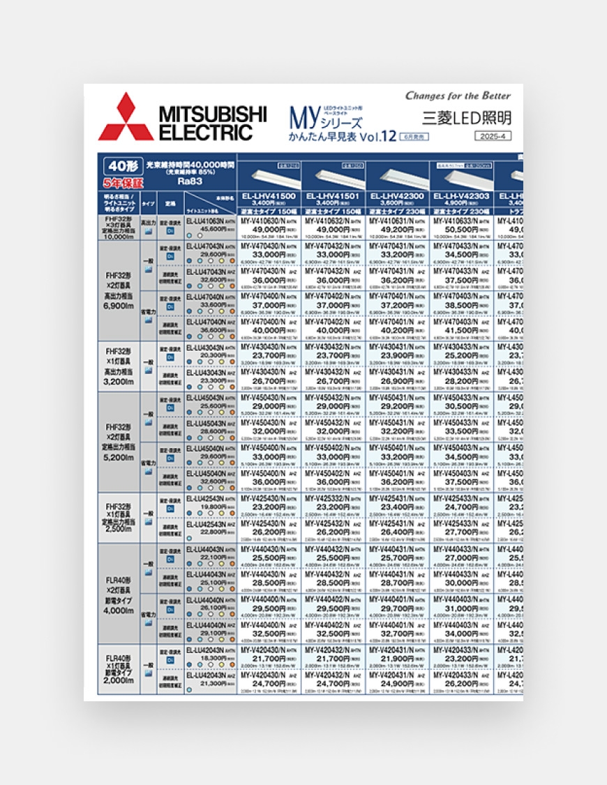既存光源器具の器具寸法、使用ランプなどの情報を入力すると、置換え後の三菱LED照明器具を簡単に検索できます。