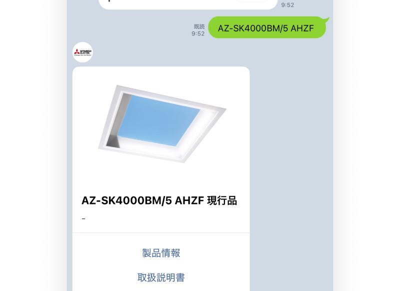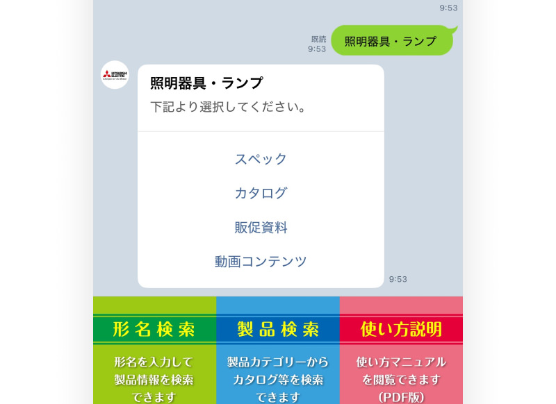 製品の型名をメッセージで送るだけで取扱説明書や納入仕様書などの製品情報を簡単に入手することが可能。