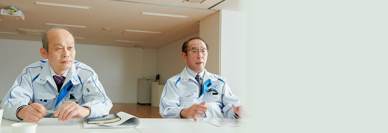 電気と建築設備の2つの柱で大分に寄り添い、暮らしを支え続けた40年間について、代表取締役社長・鶴原 達美 氏と見積設計部長・古城 宏明 氏にお話を伺いました。