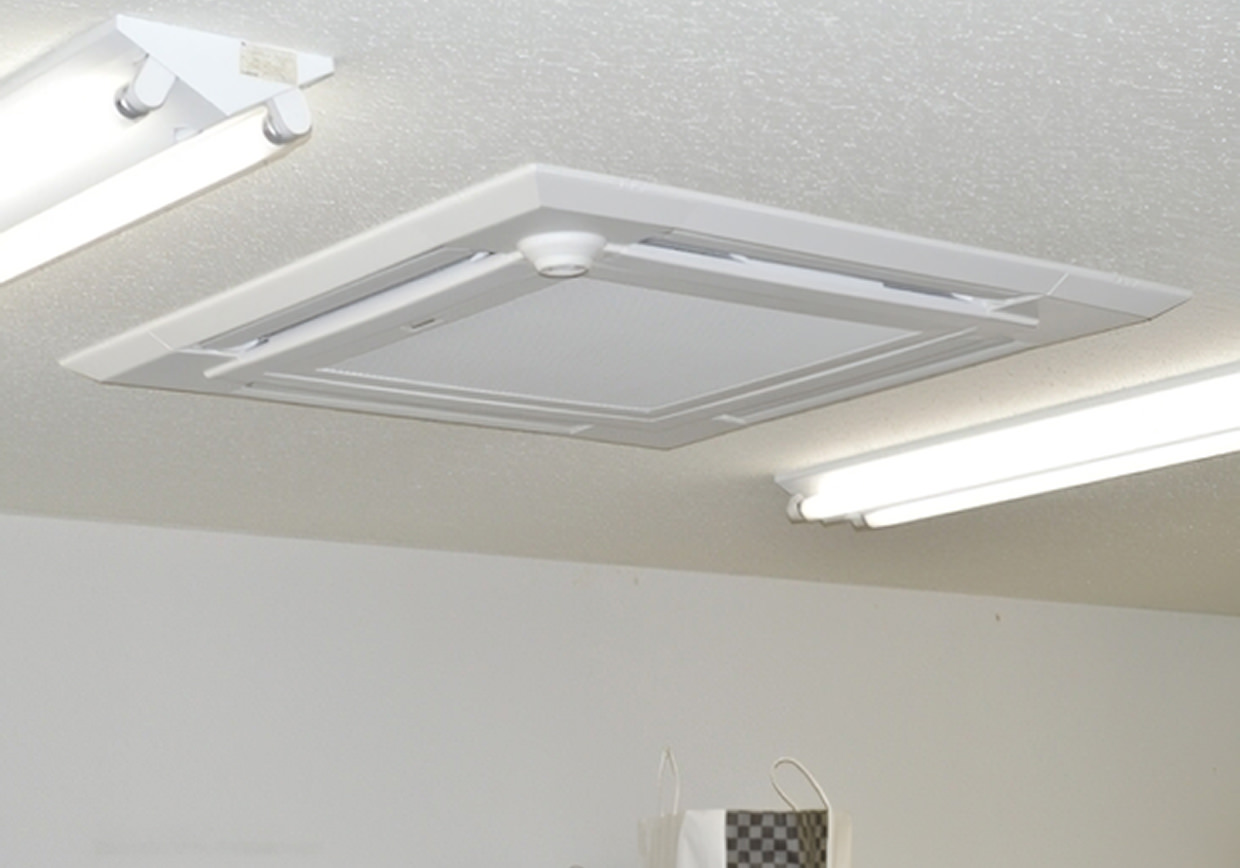 室内ユニットはムーブアイ付きの4方向カセットを採用し、足元まで快適