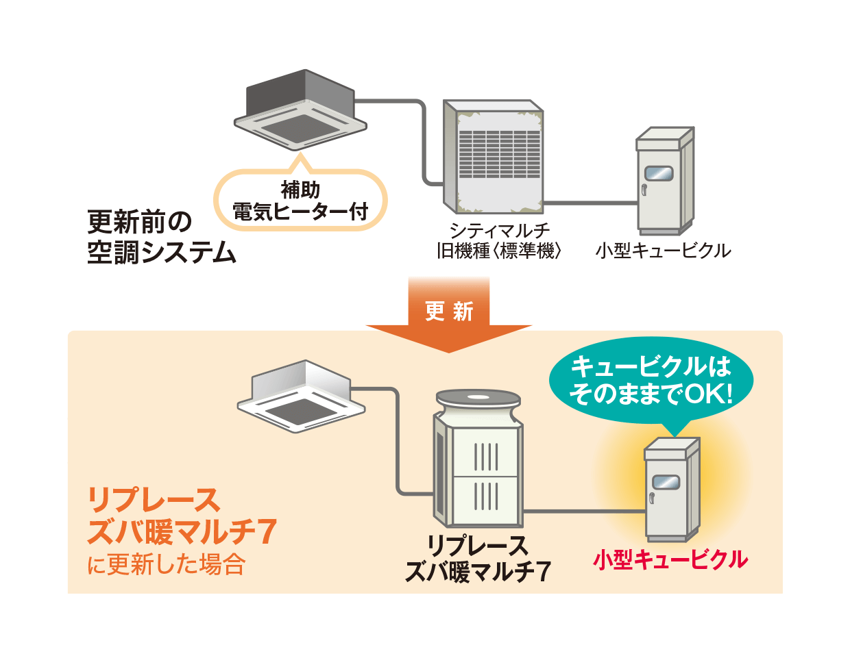 リプレースズバ暖マルチ7なら、最大電流値を抑える事ができるので、キュービクルはそのままでOK。