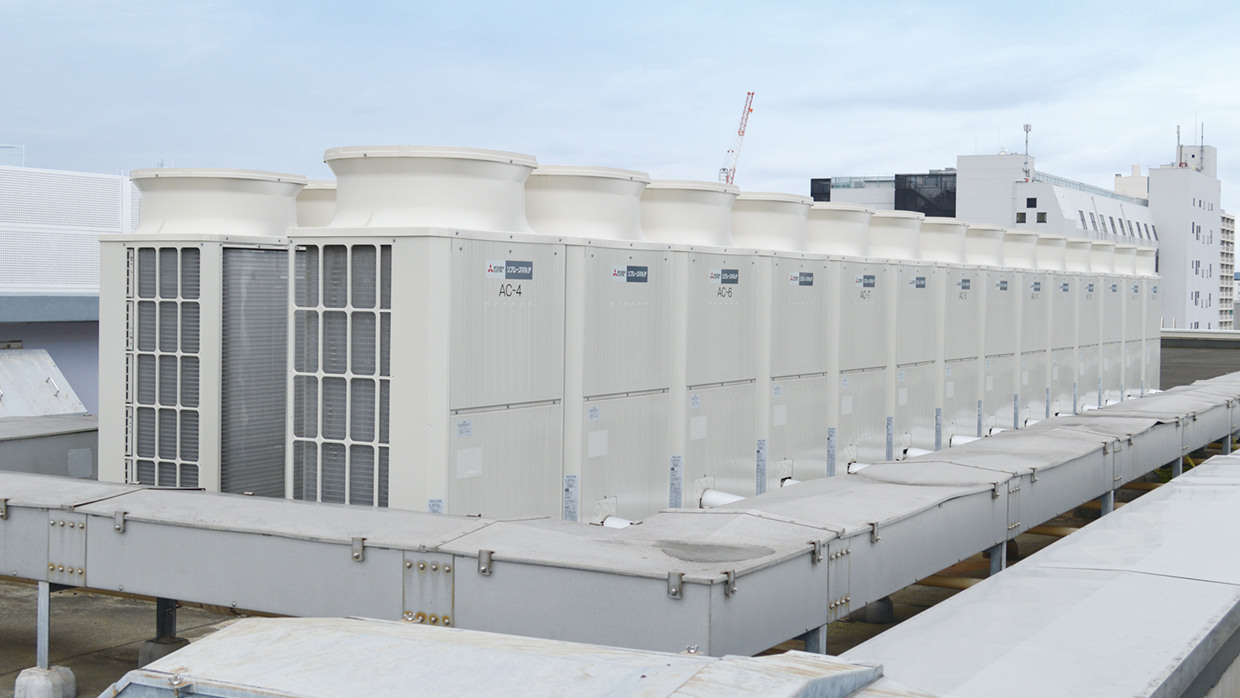 GHP(ガス式)からEHP(電気式)への更新。省エネピークカット制御を用いて電気料金を削減!補助金を活用し、初期投資を抑制
