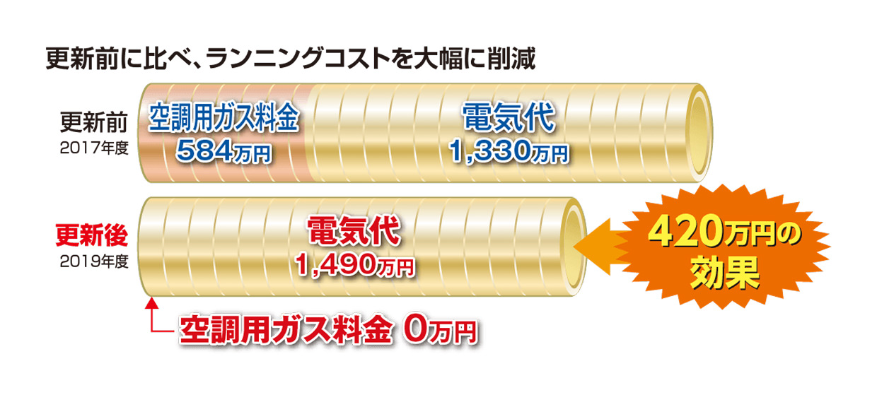 GHPからEHPへの更新によりランニングコストを大幅削減