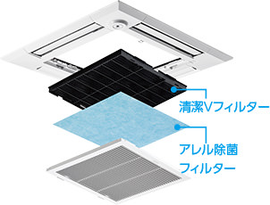 - ※清潔Vフィルターにおける作用・効果の実証数値については、各室内ユニット特長ページをご覧ください。