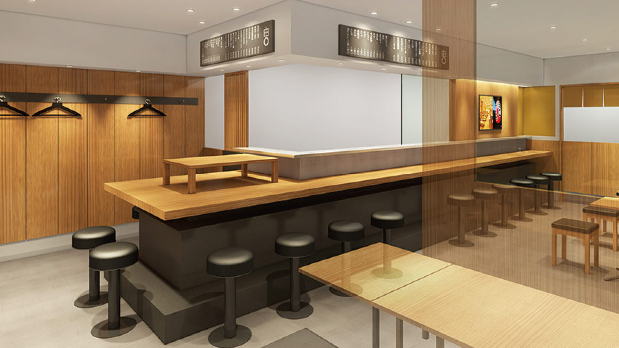 厨房にはスープ釜が多く、茹麺機は6連対応、餃子や揚げ物もあるので館内空調だけだと40℃近くなります。専用の空調機で作業者の負担を減らし、店のコンセプト「麺処・飲み処」にふさわしい味とサービスを提供したいと思います。
