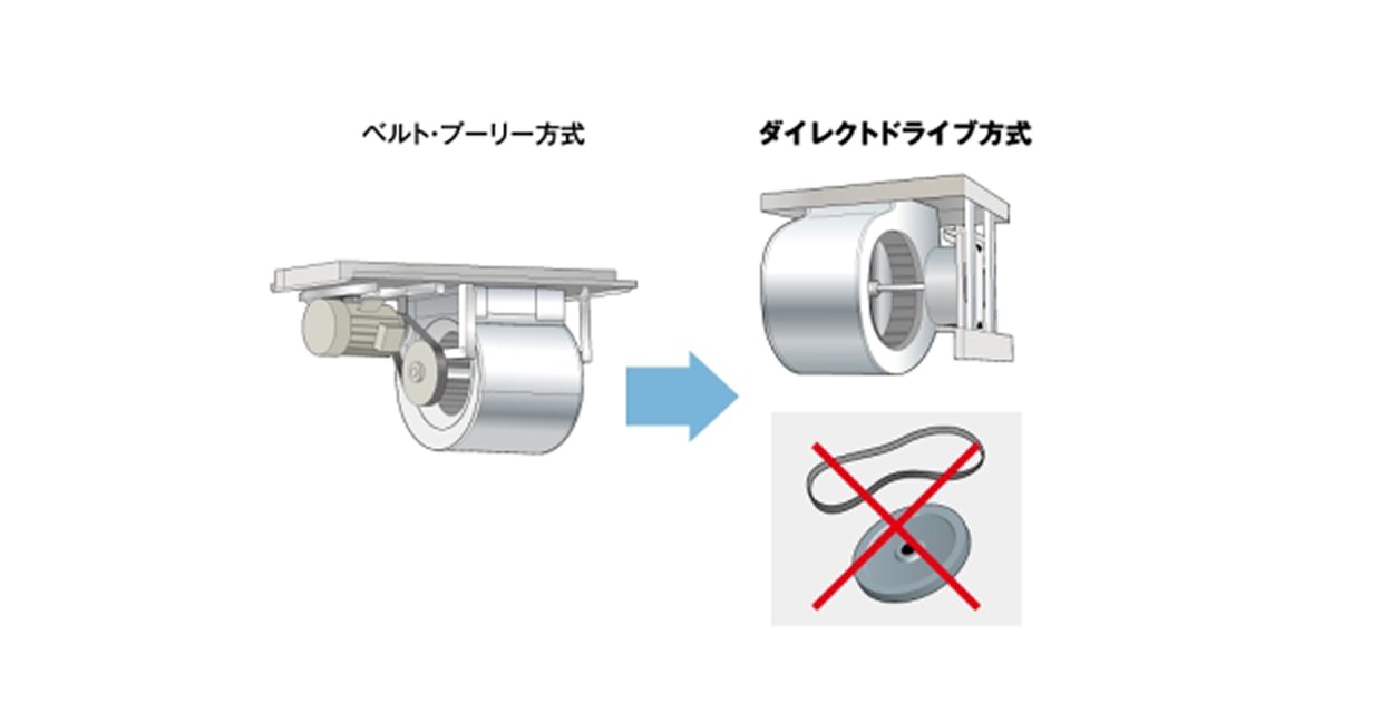 ファシレアDDならダイレクトドライブ構造を採用しているためプーリー・ベルトのメンテナンスが不要。プーリー・ベルト方式ではベルトの定期的な張り調整が必要でしたが、ダイレクトドライブ方式を採用しているファシレアDDではベルトのメンテナンスの手間が削減できます。
